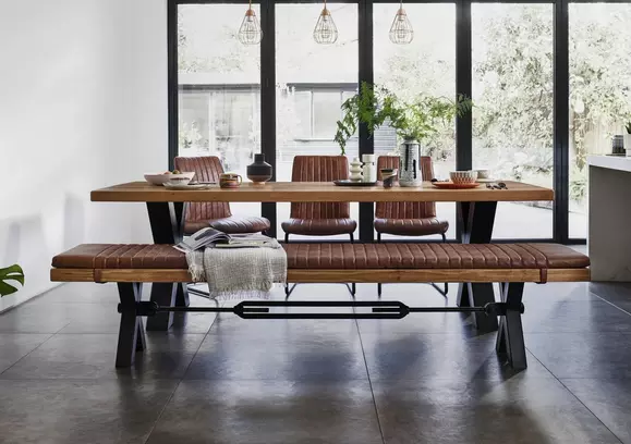 Homescapes Large Dining Table Bench Set Industrial 100 Solid Dark Wood With Black Metal Legs 175 X 90 X 76 Cm Soho Wooden Kitchen Table Set With 2 Benches For 6 from images-na.ssl-images-amazon.com We researched the best options to add to your dining room. This is a picnic style dining table that is come with the three pieces per set for you to choose such as benches only, table only, table and benches set. The side chairs and armchairs included in the set feature embellishments that complement the dining table. If you do not see the item you want listed here individually , please find it in our dining room. The chilson table, bench and stool dining set from garden trading is bang on trend with its industrial finish, a great choice for anyone looking to add a touch of style to a kitchen or dining room, or outdoor dining furniture which oozes contemporary design. Not finding what your project needs? A modern and comfortable dining experience. The set includes a dining table, dining bench, 2 armchairs, and 2 side chairs.